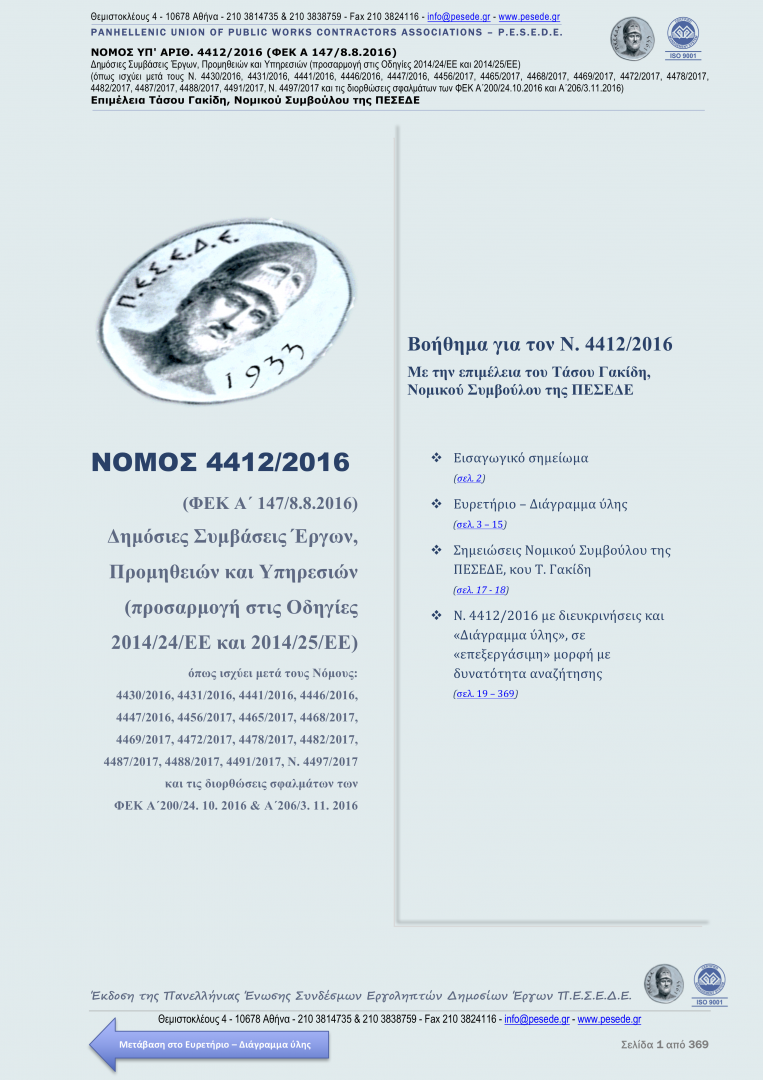 ΝΟΜΟΣ 4412/2016 Δημόσιες Συμβάσεις Έργων, Προμηθειών και Υπηρεσιών (προσαρμογή στις Οδηγίες 2014/24/ΕΕ και 2014/25/ΕΕ) όπως ισχύει μετά και τον ν4497/17 με την επιμέλεια του Τ. Γακίδη