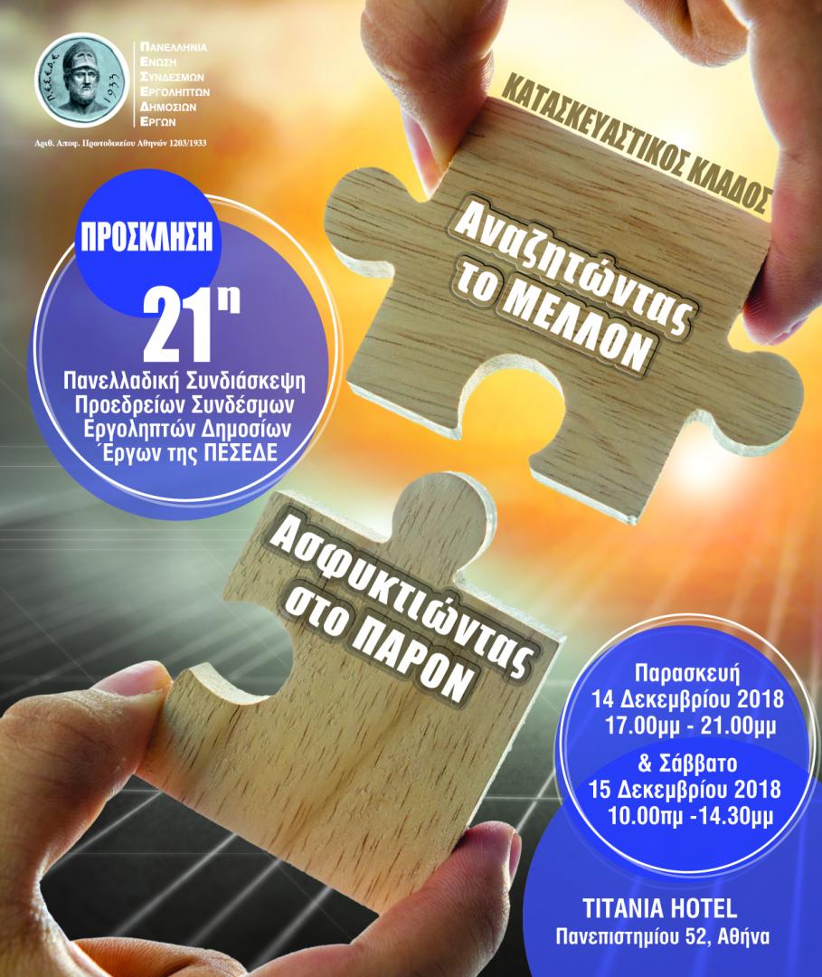 21η Πανελλαδική Συνδιάσκεψη Προεδρείων Συνδέσμων της ΠΕΣΕΔΕ - 14 & 15 Δεκεμβρίου 2018 στο Ξενοδοχείο Titania, Πανεπιστημίου 32, στην Αθήνα