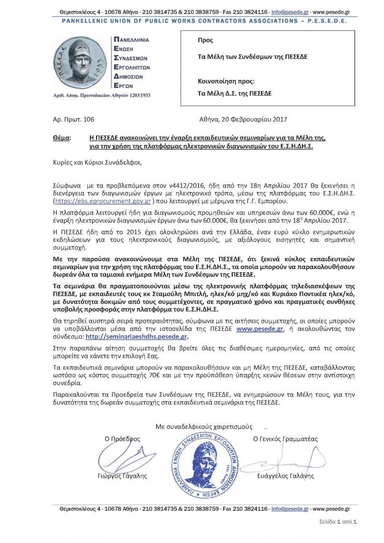 ΠΕΣΕΔΕ: Έναρξη εκπαιδευτικών σεμιναρίων για τα Μέλη της, για την χρήση της πλατφόρμας ηλεκτρονικών διαγωνισμών του Ε.Σ.Η.ΔΗ.Σ.