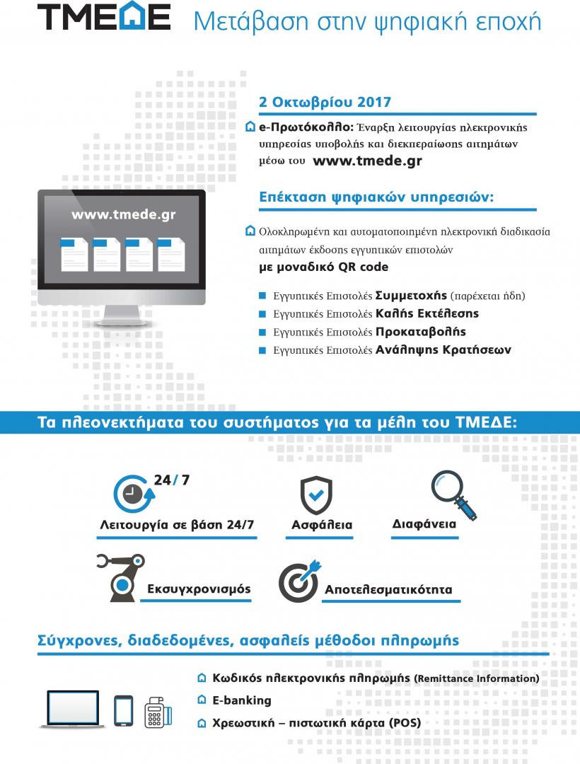 ΤΜΕΔΕ δελτίο τύπου: Στην ψηφιακή εποχή εισέρχεται το Τ.Μ.Ε.Δ.Ε. - Ηλεκτρονική πλέον η έκδοση εγγυητικών επιστολών συμμετοχής