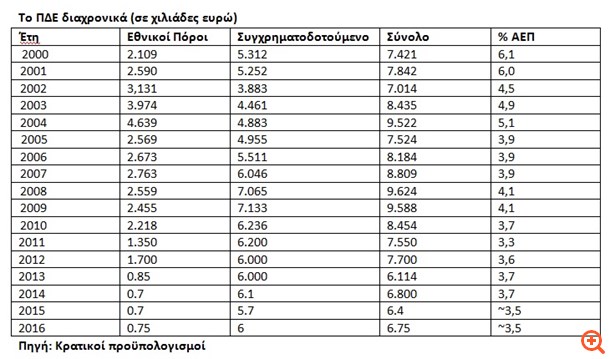 Στα τέλη της δεκαετίας του 1990 επέστρεψε το Πρόγραμμα Δημοσίων Επενδύσεων (ΠΔΕ), σύμφωνα με το προσχέδιο του εθνικού προϋπολογισμού για το 2016 που παρουσίασε πριν από λίγες ημέρες το υπουργείο Οικονομικών. Το γεγονός αυτό σε συνδυασμό με την διαφαινόμενη αδυναμία ένταξης στο νέο ΕΣΠΑ (ΣΕΣ 2014-2020) των υπό κατασκευή οδικών αξόνων ναρκοθετεί τα υφιστάμενα και νέα μεγάλα έργα.